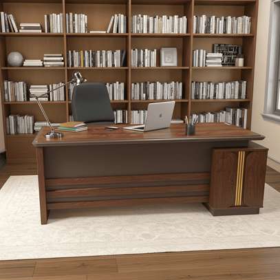 Crafted from high-quality engineered wood, the desk includes a refined, scratch-resistant laminate finish. This ensures long-lasting durability even with daily use. Moreover, its rich executive color tones elevate the office décor, creating an atmosphere of confidence and prestige. The reinforced edges and strong construction provide stability and reliability, making this desk a smart investment for any modern office setup.
