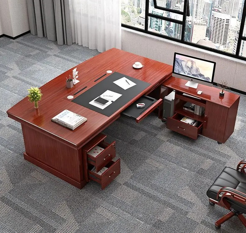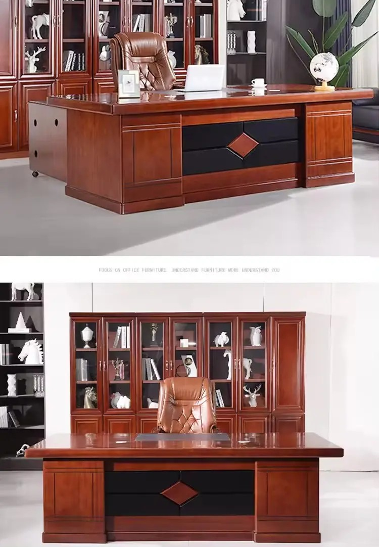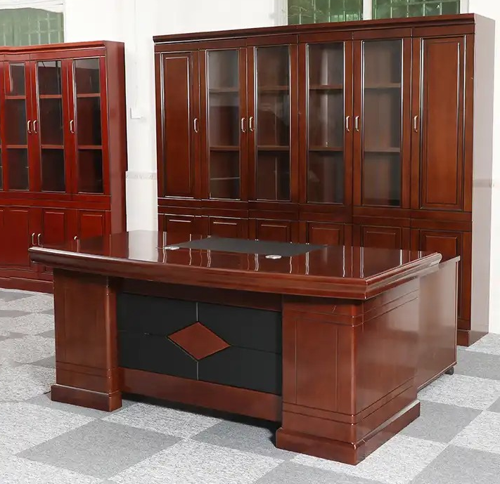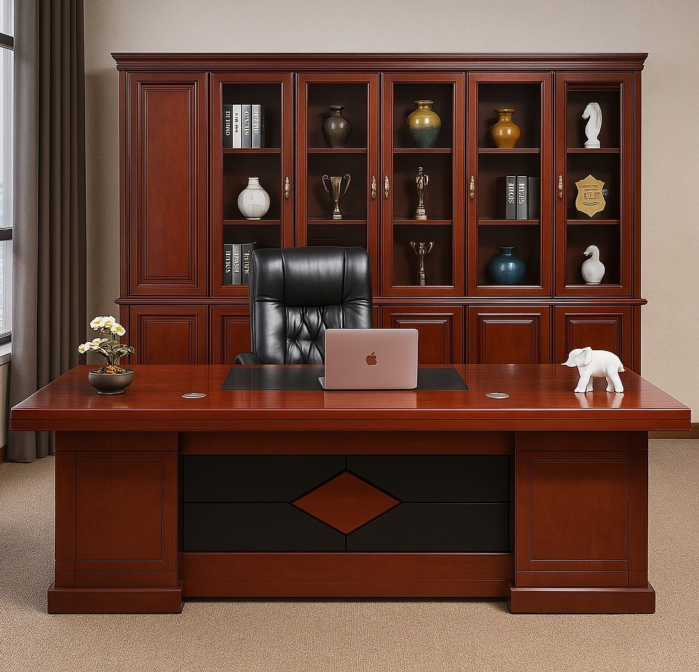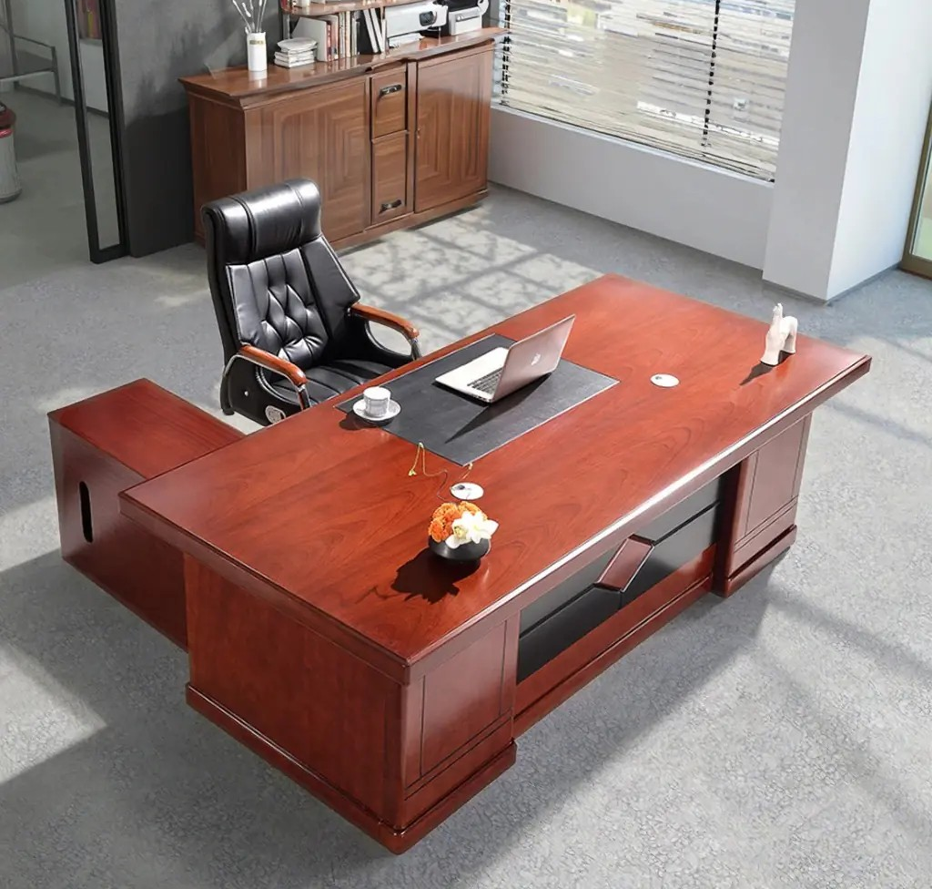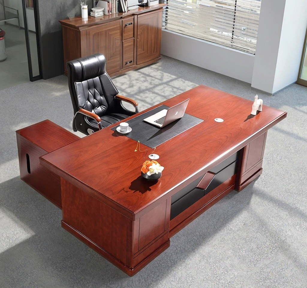 Crafted from high-quality mahogany wood, this desk exudes a rich, professional look that complements modern and traditional office interiors alike. The mahogany finish is not only visually appealing but also durable, resisting scratches, stains, and daily wear. Its smooth, polished surface ensures ease of writing and computer use, while the sturdy construction guarantees long-lasting stability and reliability.