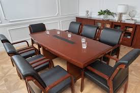 The mahogany office boardroom table complements both traditional and contemporary interiors. Its sleek lines, classic wood tone, and elegant finish create a striking focal point in any conference room. It leaves a strong impression on clients and colleagues alike.
