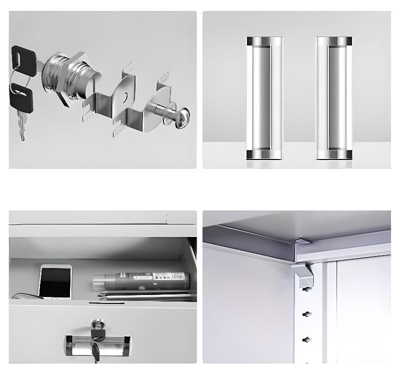 Lockable Doors: Equipped with secure locks to protect important files, tools, and office or personal items.