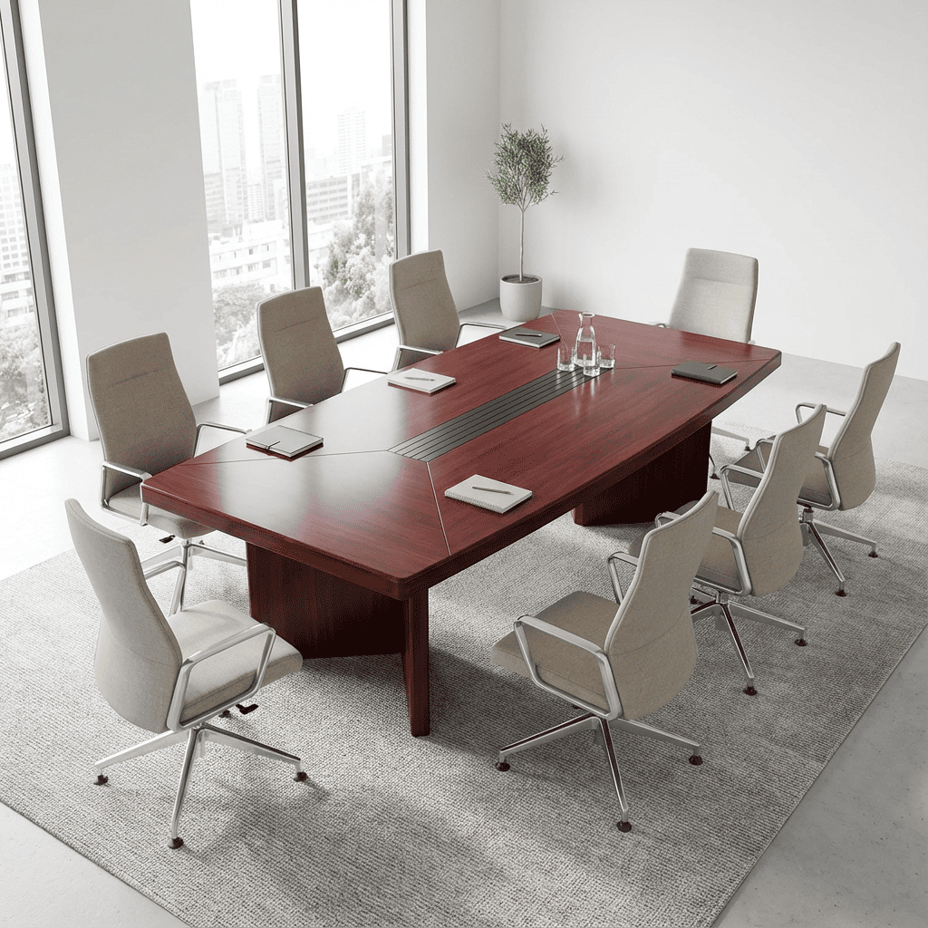 Built for durability and everyday professional use, the Mahogany Meeting Table features a strong, stable frame that ensures long-lasting performance. The smooth, spacious tabletop provides ample room for laptops, documents, and presentation materials while maintaining a clean and organized appearance. With its timeless design and superior craftsmanship, this meeting table blends functionality with executive elegance, making it a perfect choice for corporate offices, training rooms, and executive suites.