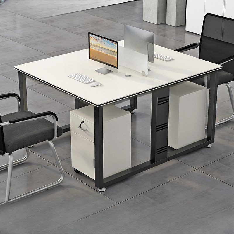 To support productivity, the 2 Person Modern Office Workstation features an intelligent layout with sufficient space for computers, documents, and office accessories. Both sides include generous tabletop areas that allow employees to work comfortably without feeling cramped. Moreover, built-in cable management systems help keep wires neatly organized, preventing clutter and maintaining a clean, professional workspace. This feature not only boosts efficiency but also improves the overall aesthetic of your office.