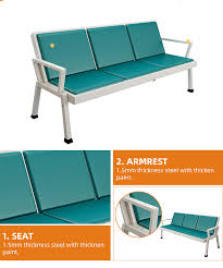 Our green waiting room bench is designed with scratch-resistant and rust-proof materials, making it suitable for heavy daily use in high-traffic environments. The ventilated perforated seat and backrest design promote air circulation, providing cool and comfortable seating during long waiting hours. The anti-slip leg caps protect floors from scratches and enhance stability. Easy to assemble and maintain, this 3 link metal waiting chair offers a perfect balance of functionality, comfort, and style.