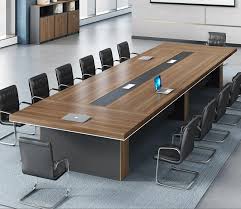 Finished with a scratch-resistant laminate or veneered wood grain, the table resists wear while maintaining a polished, executive look. The sturdy panel or metal leg base ensures maximum stability and strength, even in high-traffic office environments. Integrated cable management options keep wires neat and out of sight, supporting a clean and professional setup for modern tech-enabled meetings.
