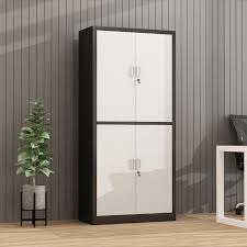 Designed for daily use, it features four secure, lockable doors and spacious compartments to store files, office supplies, tools, or personal items. Each door includes either an individual lock and key or a central locking system, depending on the model. This setup allows you to keep contents safe and access controlled.