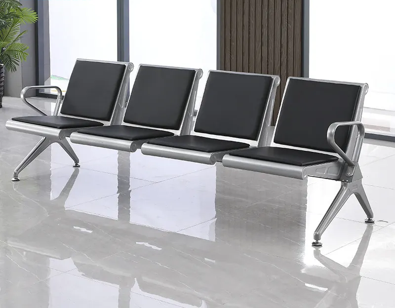 Each of the four seats is generously padded with high-density foam to provide superior comfort during short or extended waiting periods. The padded seat and backrest support proper posture, helping reduce discomfort for guests. Moreover, the black upholstery, finished in durable fabric or leatherette, offers a soft feel while remaining stain-resistant and easy to maintain. This balance ensures comfort and practicality in professional environments.