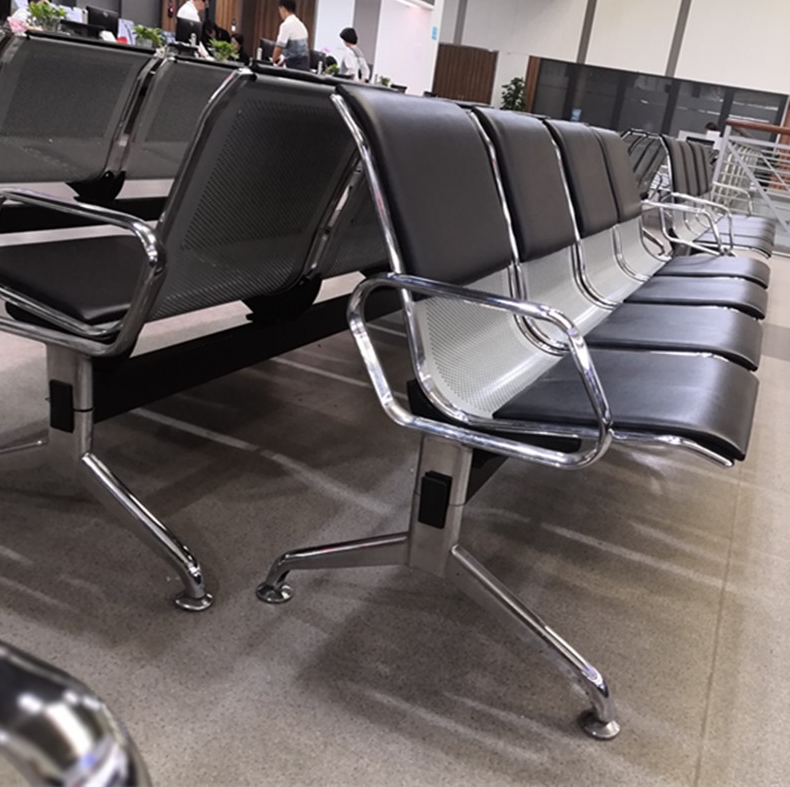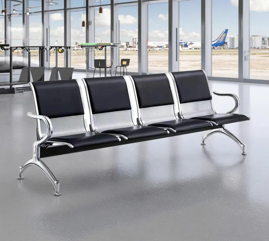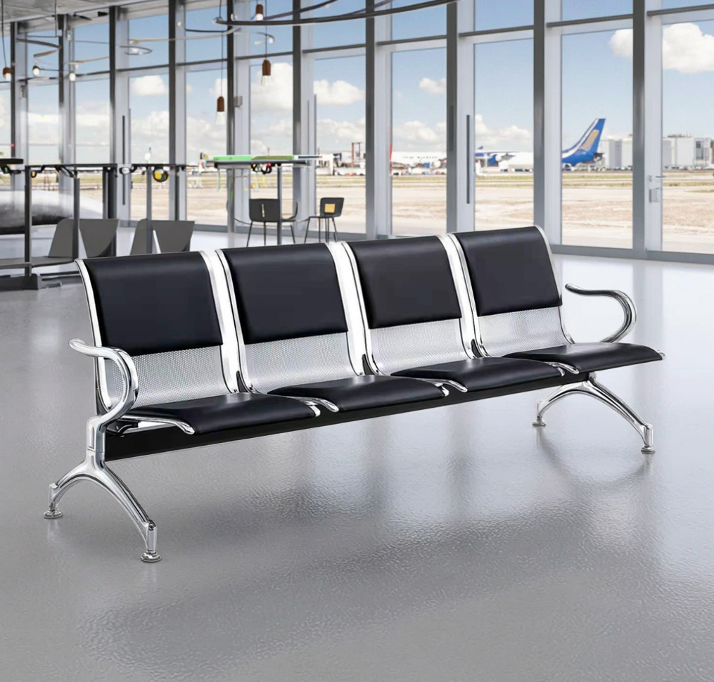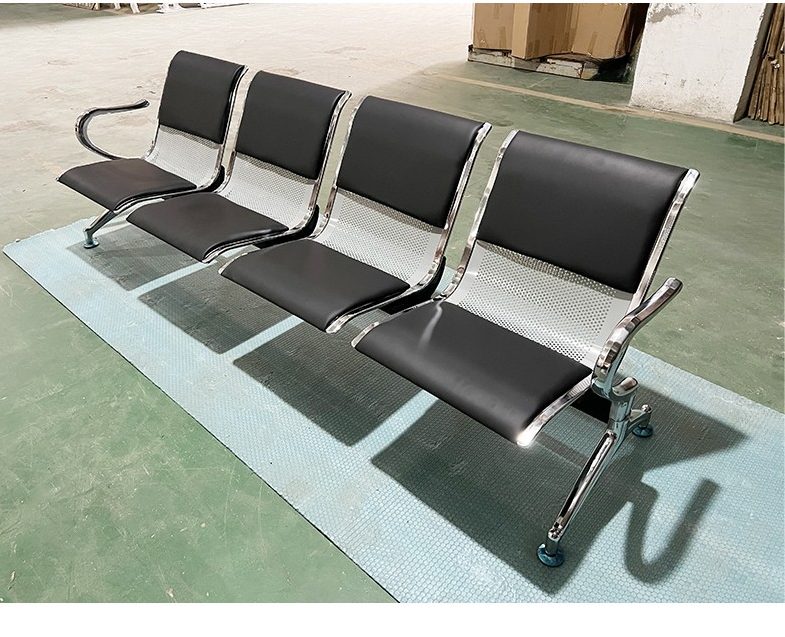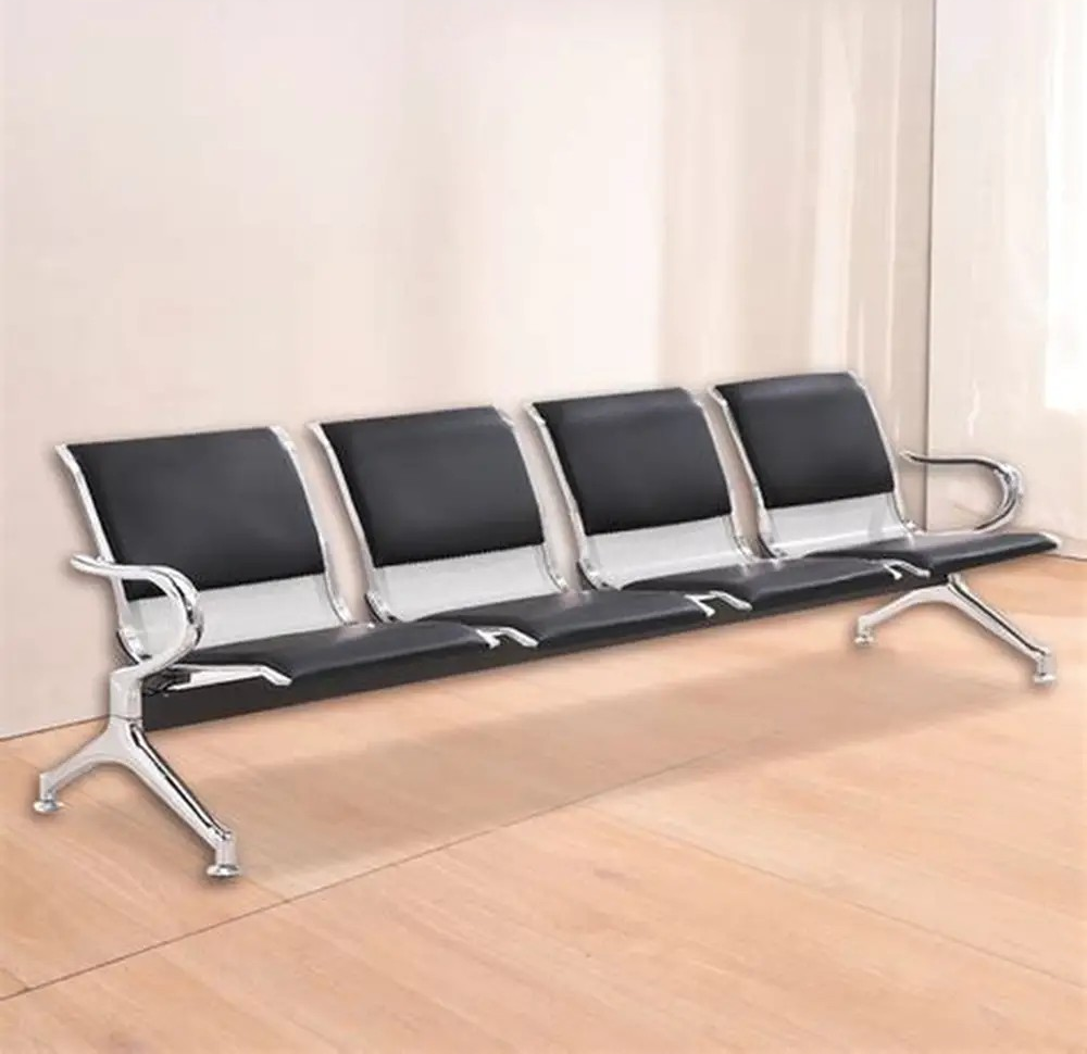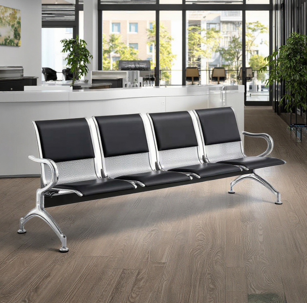 The bench features a spacious, well-cushioned seat that comfortably accommodates up to four people. The padding provides firm yet comfortable support, allowing users to sit with ease during waiting periods. Its backless design promotes flexibility and easy movement, making it a convenient choice for busy reception areas.