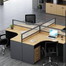 - Four Work Surfaces: Four individual desks or work areas arranged together, typically in a square, cloverleaf, or other clustered configuration. This promotes interaction and teamwork.