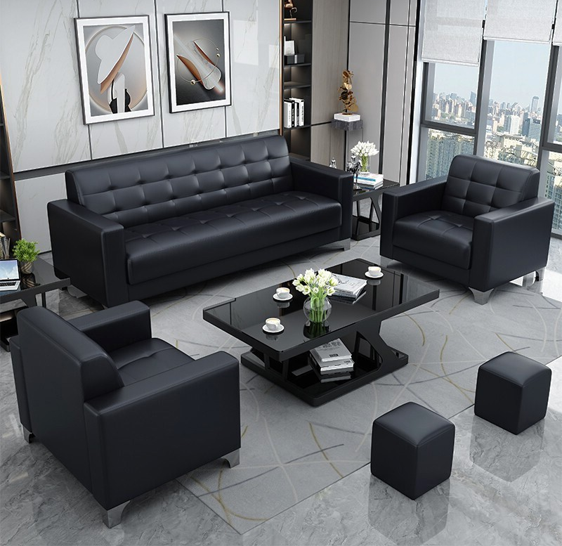 Crafted with high-quality genuine leather upholstery, this office sofa delivers a luxurious look and feel that exudes elegance. The smooth leather surface is not only visually appealing but also easy to clean and maintain, making it a practical choice for high-traffic office environments. The sturdy solid wood frame combined with reinforced metal support ensures long-lasting durability and stability, allowing it to comfortably accommodate up to five without compromising on structure or comfort.