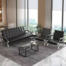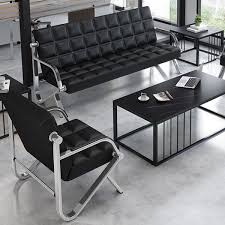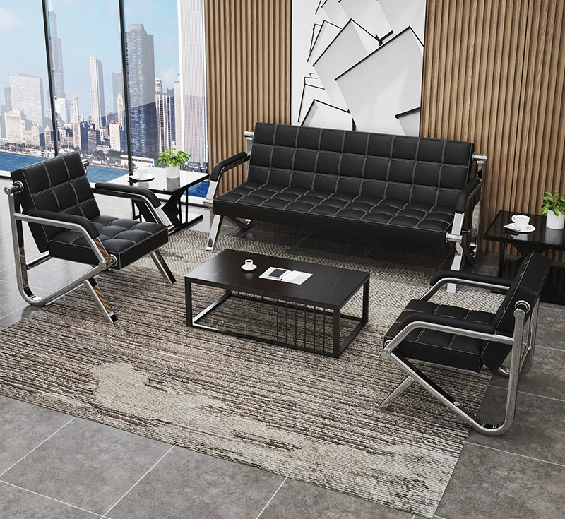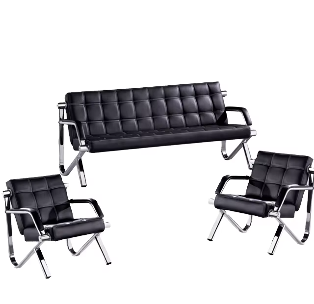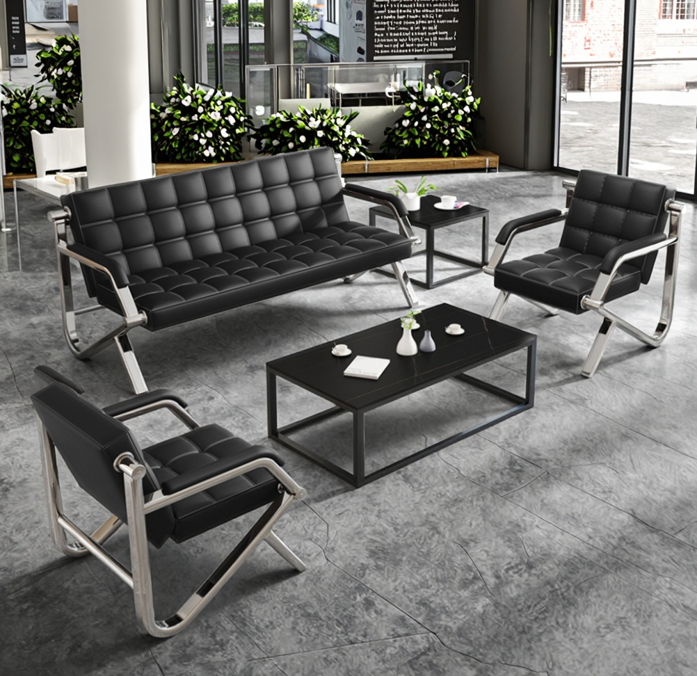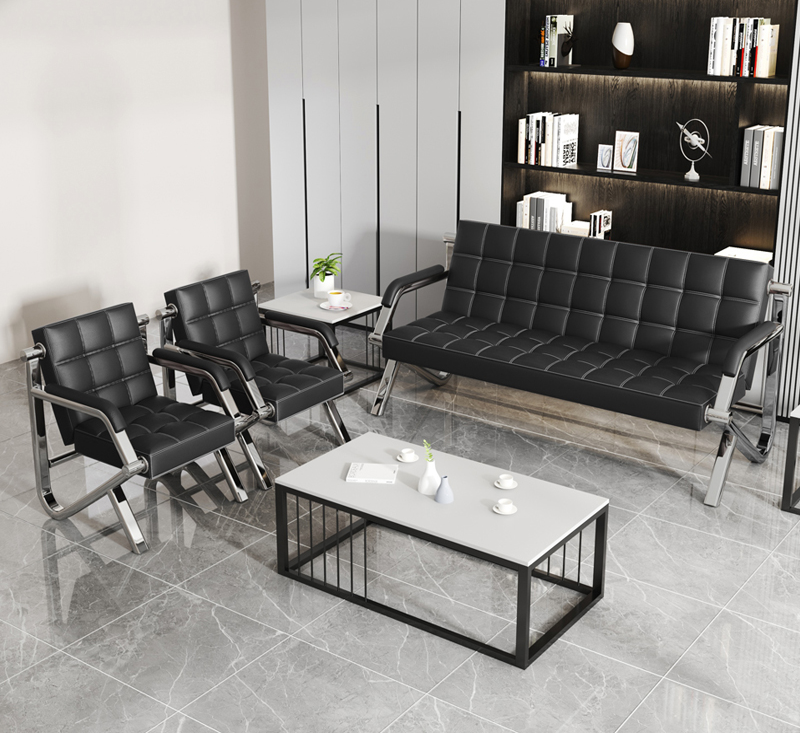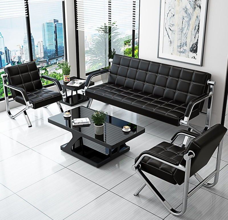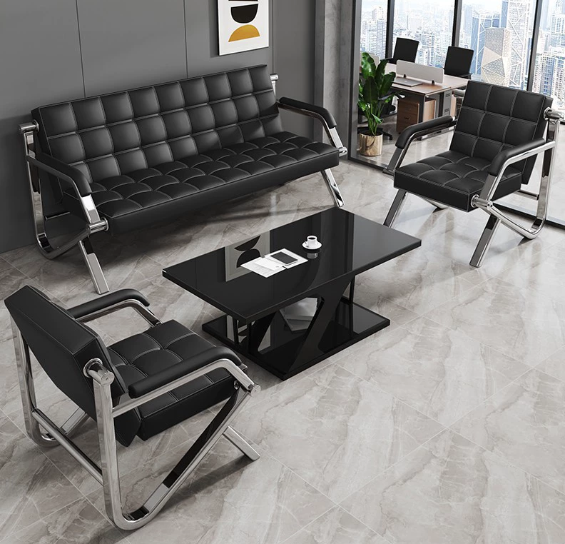 Crafted with high-quality materials, this sofa set features a solid wooden frame for durability and stability. The cushions are upholstered with premium PU leather or fabric, providing a soft and comfortable seating experience. The ergonomic design ensures excellent back and arm support, making it ideal for long meetings or casual office discussions.