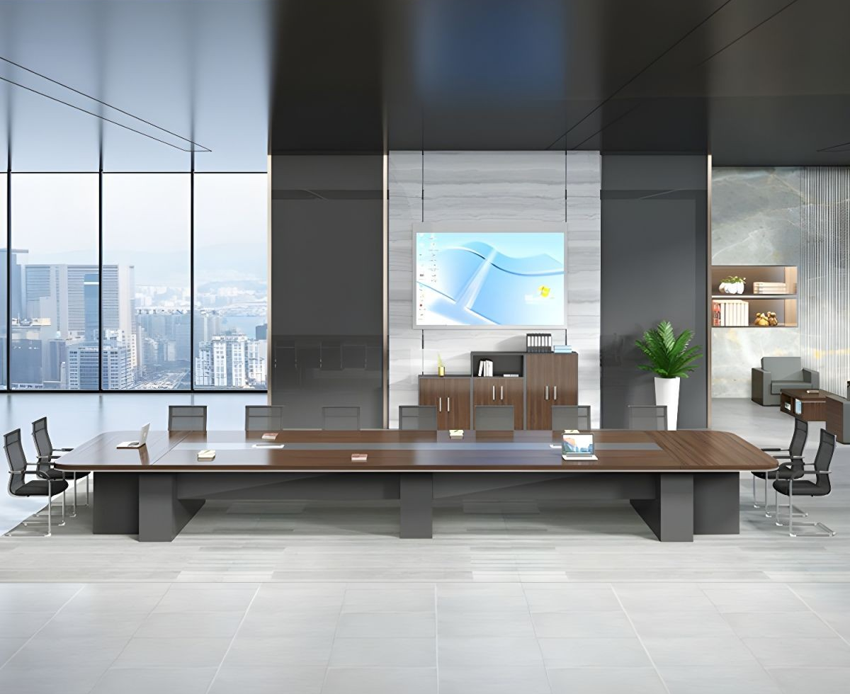 Available in walnut, oak, or mahogany finishes, this table complements both traditional and modern interiors. Thanks to its modular design, it is easy to transport, assemble, and adjust when reconfiguring office layouts. Whether you’re hosting executive meetings, client presentations, or creative brainstorming sessions, this boardroom table adds authority and sophistication to any space.