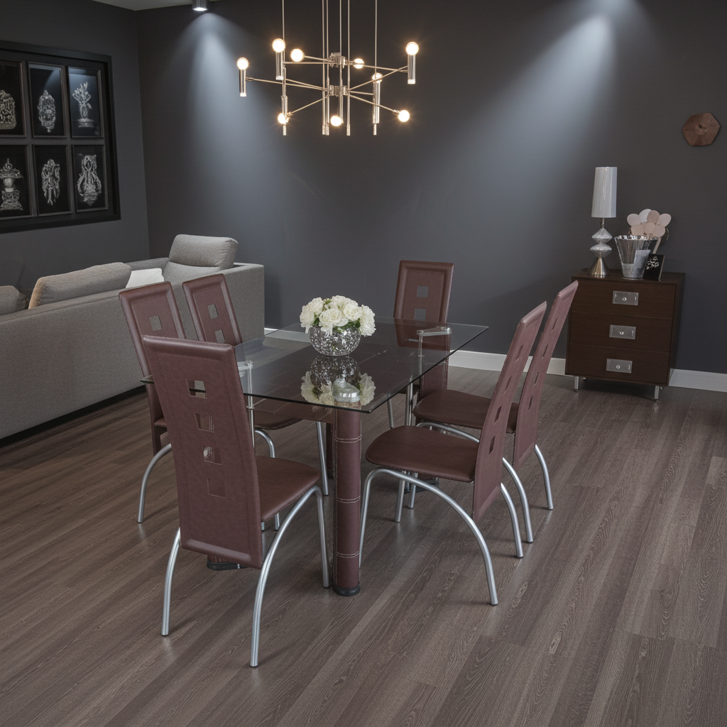 Built with a sturdy frame and high-quality materials, the Glass Top Dining Set guarantees stability and durability for everyday use. The sleek, contemporary design complements both modern and classic interior spaces, making it an excellent addition to homes, apartments, and dining areas of all styles. Whether used for daily meals or special occasions, this 6-seater dining set provides the perfect balance of beauty, strength, and practicality. Its easy-to-clean surfaces and low-maintenance construction make it ideal for busy households seeking both luxury and convenience.