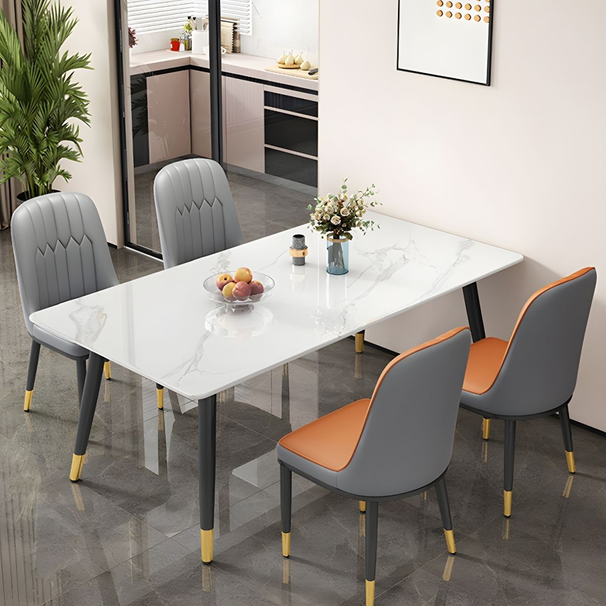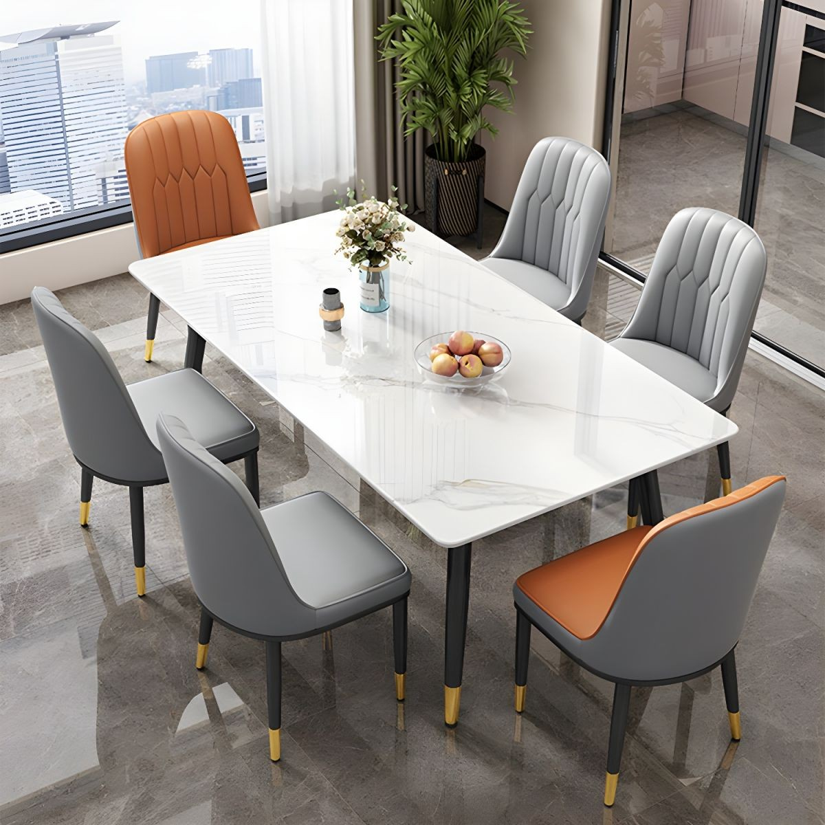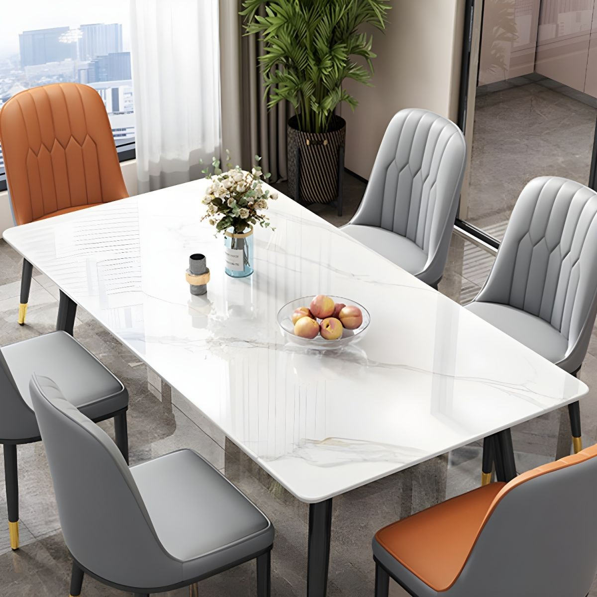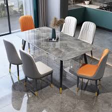 With its modern design, clean lines, and luxurious marble finish, this dining set blends seamlessly with contemporary, classic, and luxury interiors. It instantly enhances the look of your dining room while adding a touch of elegance and sophistication. Moreover, the smooth surface is easy to clean, allowing for effortless maintenance.