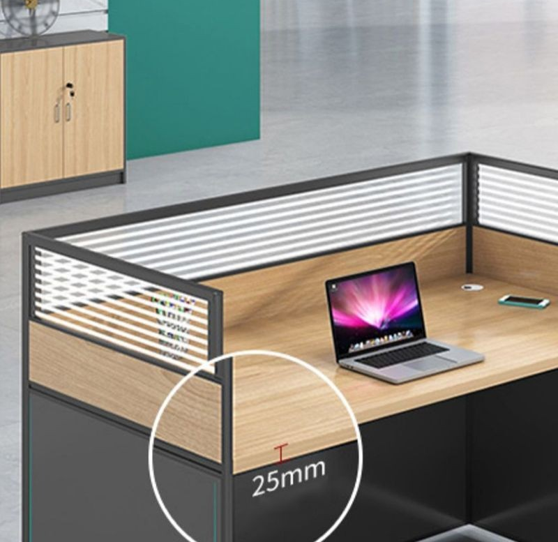 Crafted with high-quality engineered wood tabletops and a durable metal frame, the workstation offers a sturdy and long-lasting structure capable of supporting laptops, monitors, and office essentials. The modular design allows each workstation to maintain personal space while enabling easy configuration for open-plan offices. The integrated modesty panels provide privacy without compromising on natural light or the open feel of the workspace.