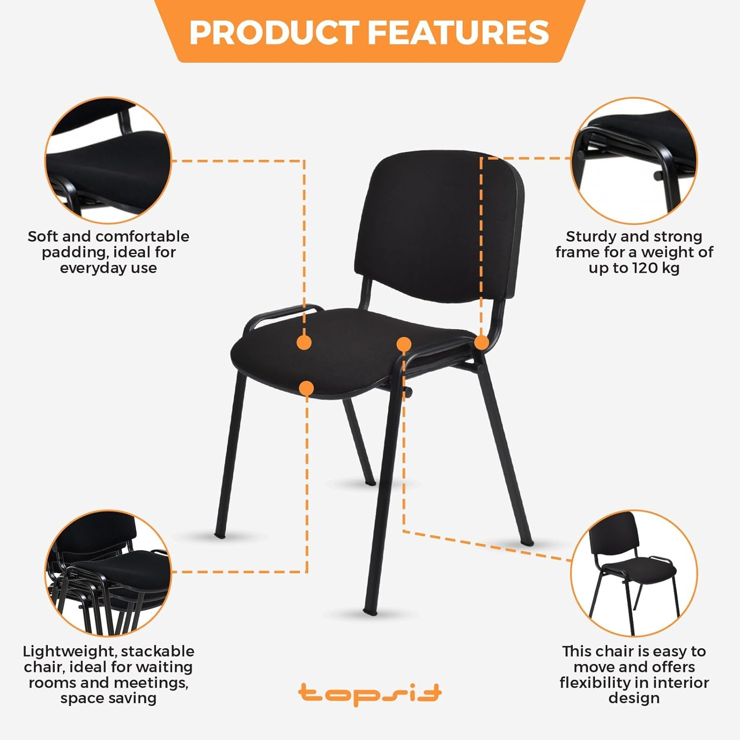 Built with a strong metal frame and supportive cushioning, the Black Tosca Guest Chair is designed for long-lasting performance in busy office environments. The ergonomically contoured seat and backrest provide reliable comfort during meetings or waiting periods, while the armless design allows easy movement and flexible seating arrangements. Perfect for corporate offices, consultation rooms, conference spaces, and reception areas, this guest chair combines functionality, durability, and modern office aesthetics.