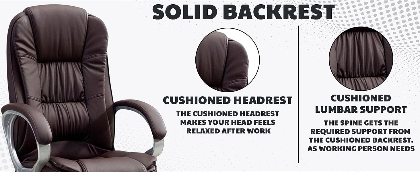The ergonomic design of the brown leather executive chair promotes proper posture and reduces fatigue. Its high backrest supports the spine and shoulders, while the well-cushioned seat provides exceptional comfort. Moreover, padded armrests help relieve pressure on the arms and wrists, allowing you to work comfortably for long hours. As a result, this chair is ideal for executives, managers, and professionals who value both comfort and productivity.