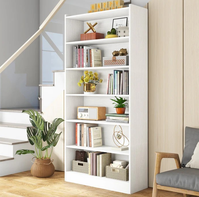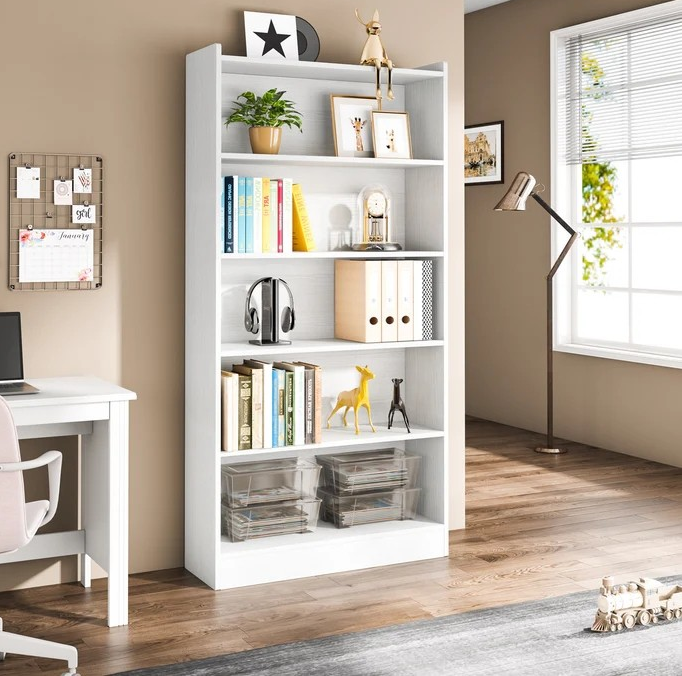 Five Spacious Shelves – Ample storage for books, files, décor, and office supplies