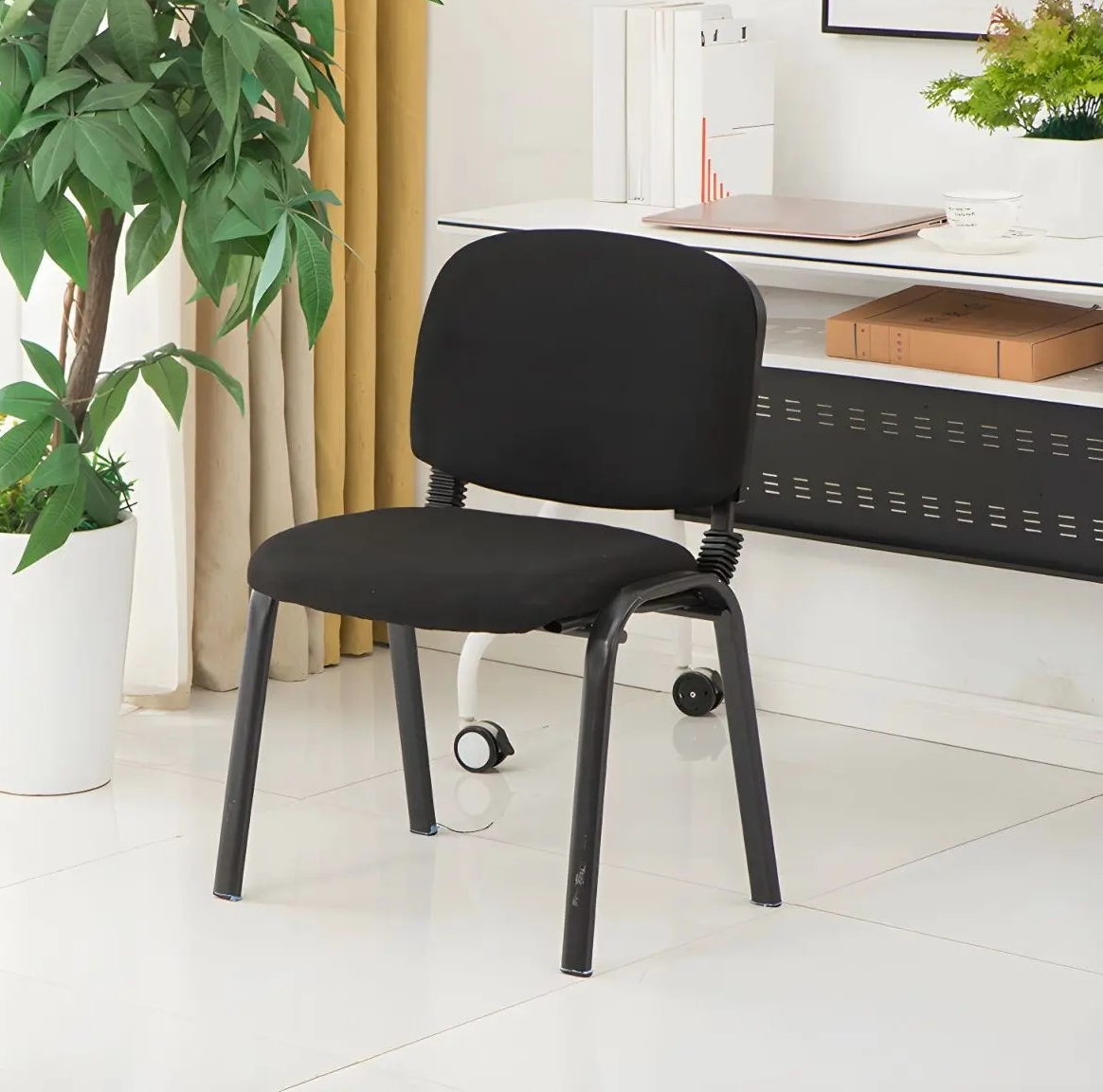 Built with a high-quality metal frame, this visitor’s chair is designed for long-lasting performance. The sturdy construction ensures stability and can withstand daily use in busy environments. The anti-slip base adds extra safety, preventing unwanted movement and protecting your floors from scratches. In addition, the durable fabric is resistant to wear, helping the chair maintain its neat and professional appearance over time.