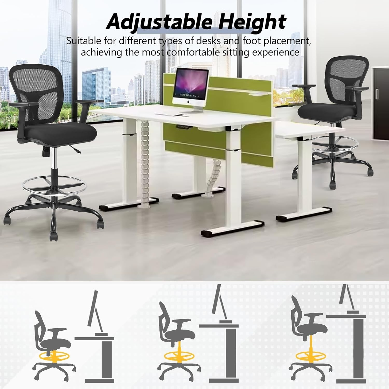 Adjustable Height Mechanism – Easily adapts to different counter and desk heights.