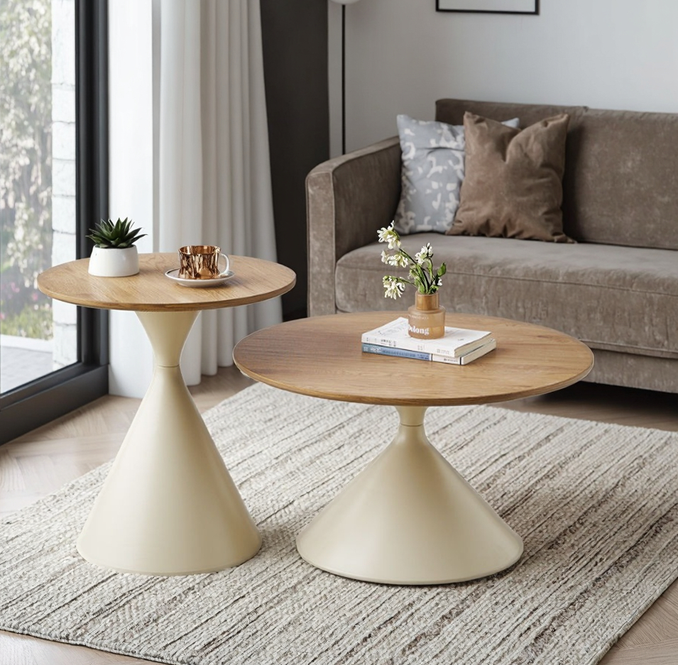 Each table features a durable metal frame for long-lasting stability. The powder-coated finish adds a sleek, modern look and protects the frame from scratches. The tabletops are made from premium engineered wood with a natural grain finish. This blend of metal and wood creates a timeless aesthetic that pairs beautifully with sofas, accent chairs, and décor pieces.