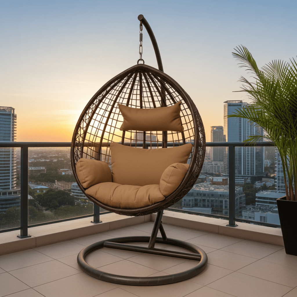 With its modern aesthetic, natural rattan charm, and elegant metal base, the Metal Framed–Rattan Hammock Chair blends effortlessly with contemporary, tropical, bohemian, and luxury décor styles. It is easy to clean, simple to maintain, and designed for everyday use.