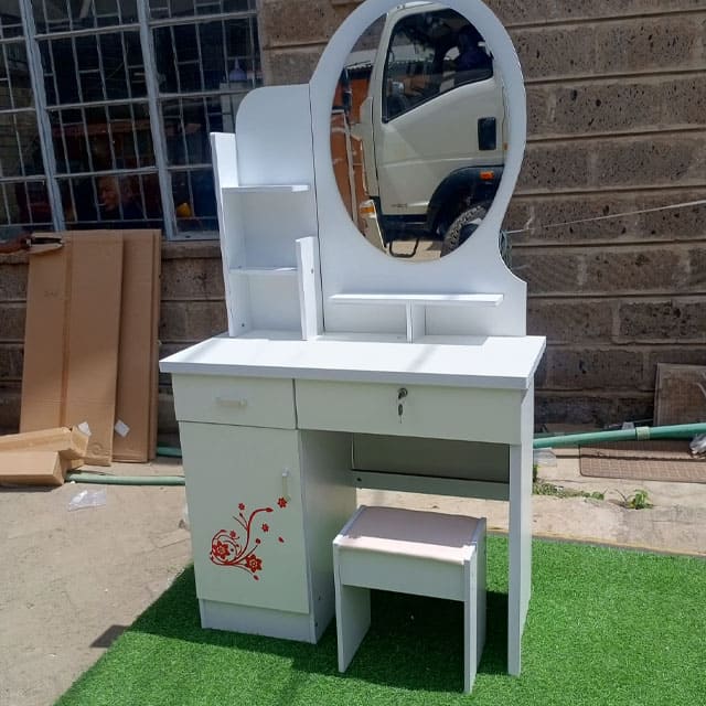 KSh 38,000.00Original price was: KSh 38,000.00.KSh 32,499.00Current price is: KSh 32,499.00.Add to cartThe Modern Make Up Dressing Table is designed to bring style, organization, and functionality to your bedroom or beauty space. Featuring a sleek contemporary design, this dressing table provides ample surface space for daily grooming while enhancing your interior décor. Built with high-quality materials, it offers durability and long-term use, making it ideal for modern homes. Its minimalist structure blends effortlessly with any décor style, while the practical layout ensures your makeup essentials, skincare products, and accessories stay neatly organized. Perfect for everyday beauty routines, this dressing table adds both elegance and convenience to your living space.