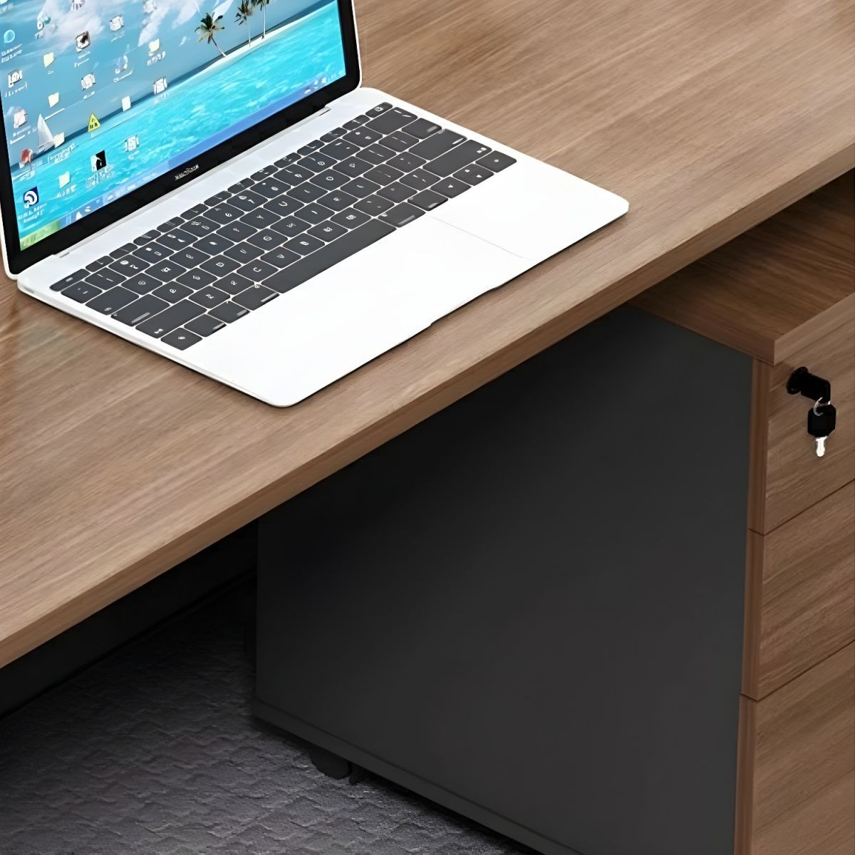 - Two lockable doors provide secure storage for documents and belongings