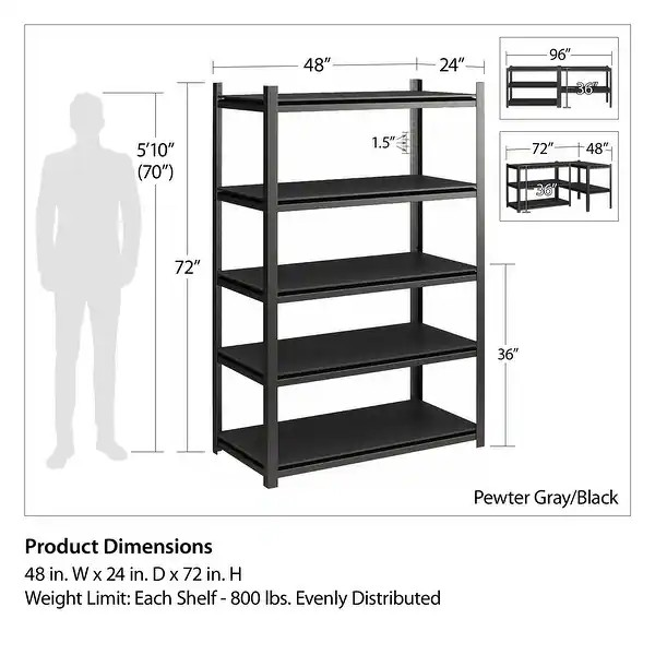 High Weight Capacity: Each shelf holds up to 250 lbs when evenly distributed.