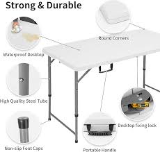 One of the standout features of this foldable dining table is its compact folding design. When not in use, the table folds flat, allowing for easy storage in small spaces such as closets, storage rooms, or vehicle trunks. The lightweight construction ensures effortless portability, making it a practical choice for event planners, rental services, and homeowners alike.