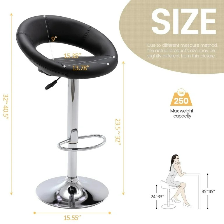 Adjustable Height Mechanism – Customizable seating for different counter or bar heights.