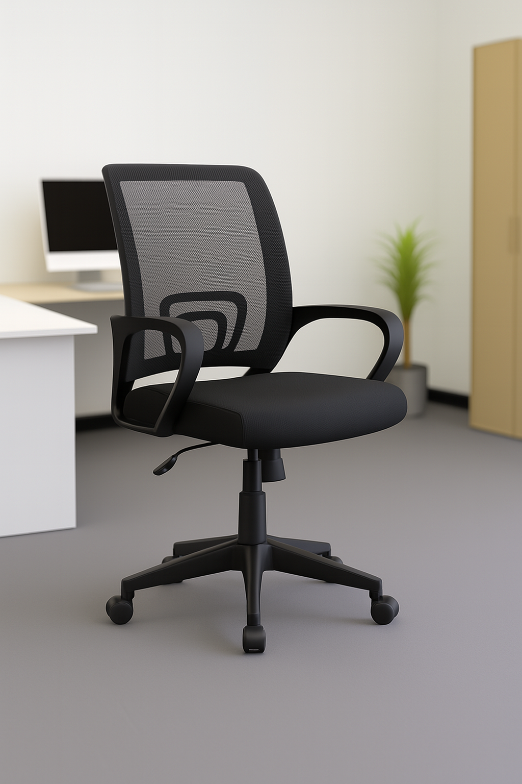 Upgrade your workspace with the Swivel Mesh Clerical Office Chair, a practical and ergonomic seating solution designed for everyday office tasks. Ideal for clerical staff, home offices, reception areas, and study spaces, this chair combines comfort, durability, and modern style. Its lightweight design and breathable mesh back make it perfect for long working hours, ensuring productivity and comfort throughout the day.