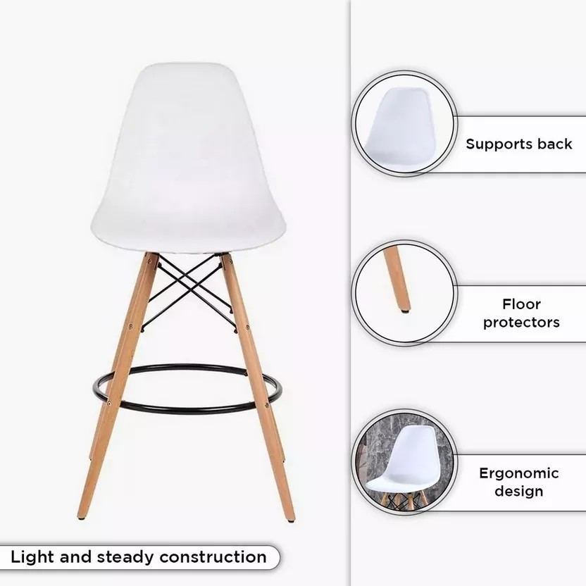 The White Plastic Eames Counter Chair is a perfect blend of timeless design, modern comfort, and everyday functionality. Inspired by the classic Eames style, this counter-height chair adds elegance and sophistication to kitchens, breakfast counters, office pantries, cafés, restaurants, and contemporary workspaces. Its clean white finish and iconic silhouette create a fresh, minimalist look that enhances both residential and commercial interiors. As a result, it is an excellent seating choice for spaces that demand style without compromising comfort.