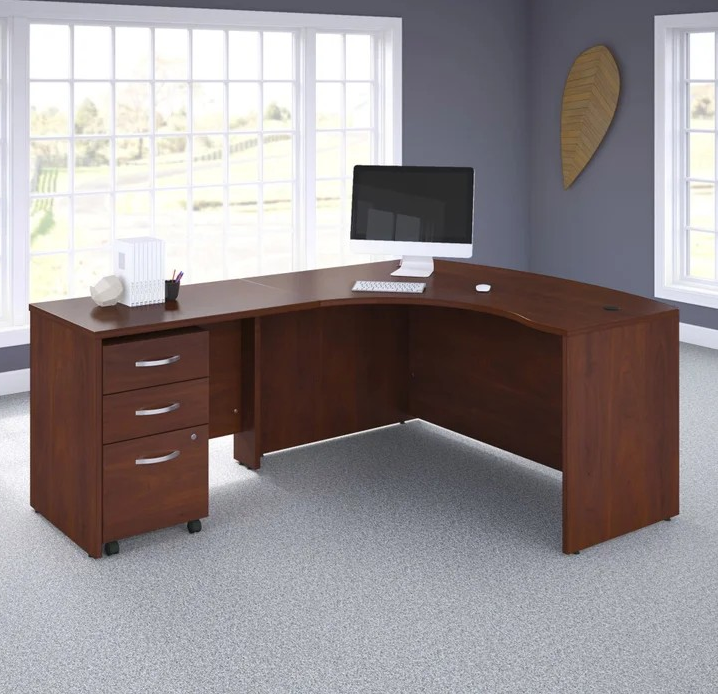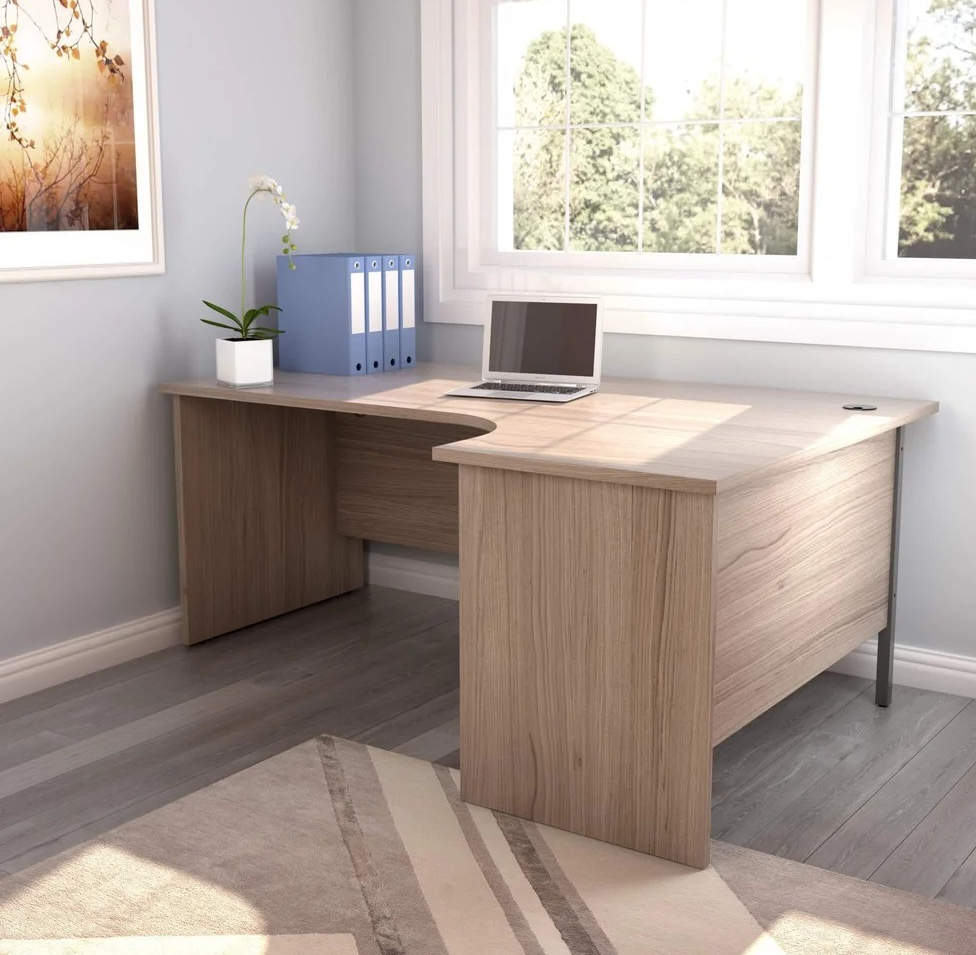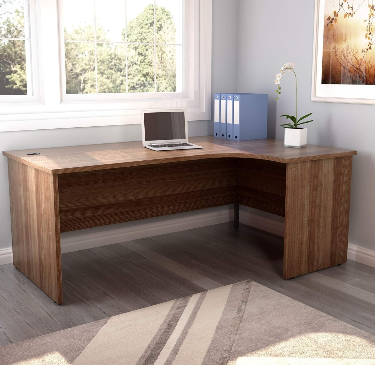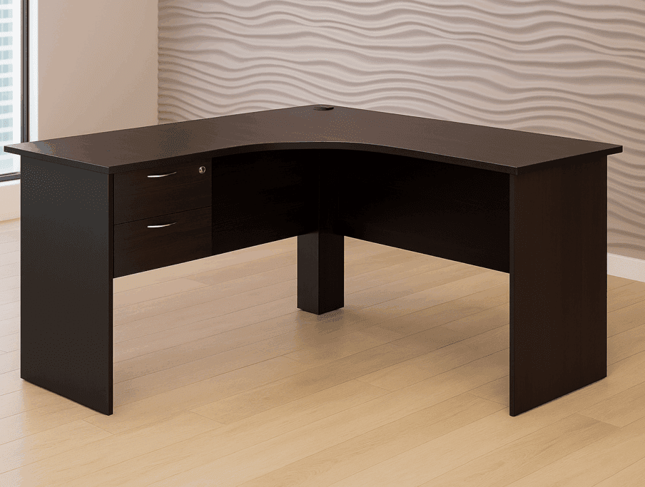 With its L-shaped design, this desk maximizes space utilization, fitting comfortably into corners or open areas. The spacious surface provides ample room for computers, phones, paperwork, and office supplies, ensuring a clutter-free and organized workspace.