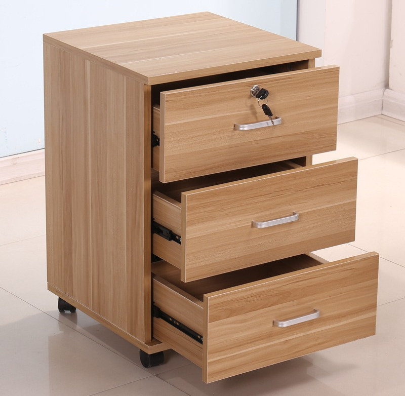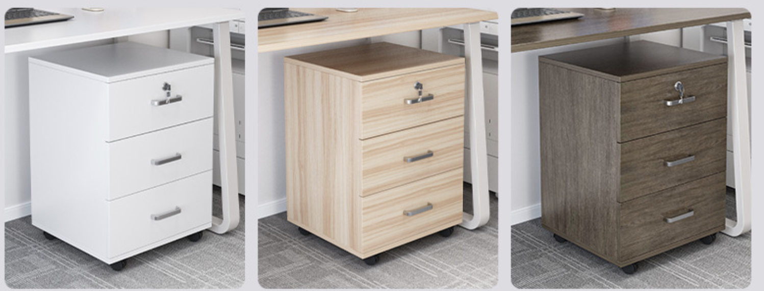 The Wooden 3 Drawer Pedestal Cabinet features three thoughtfully designed drawers to meet various storage needs: