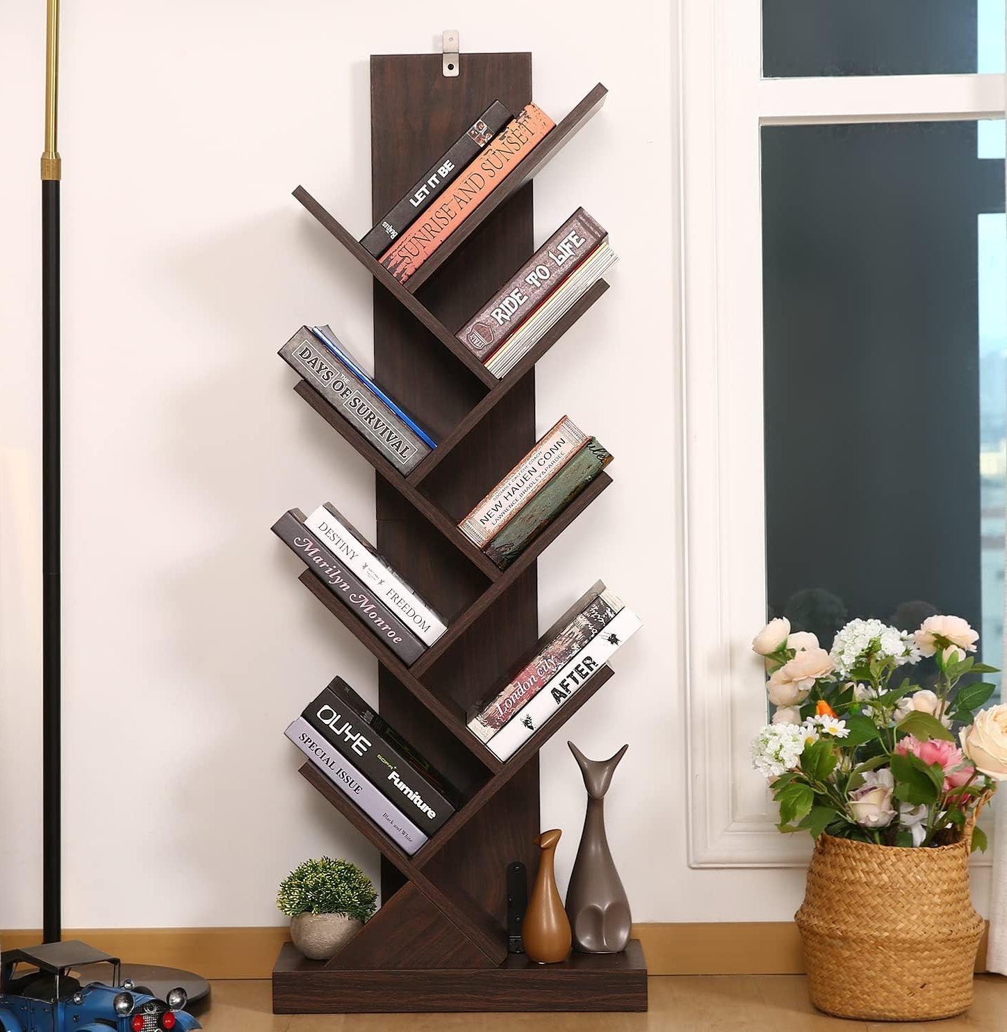 With eight spacious tiers, this tree-shaped bookshelf provides ample room to display your favorite books, potted plants, photo frames, and decorative accents. Its open-shelf concept allows for easy access and creative arrangement, giving you the freedom to personalize your space. Whether you’re a book lover looking to showcase your collection or a design enthusiast seeking a standout furniture piece, this bookshelf offers the perfect balance of practicality and aesthetics.